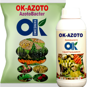 OK- Azos Azospirillum sp. fixes atmospheric nitrogen in loose association with plant roots. Azospirillum sp. converts atmospheric nitrogen into ammonium form and provides 30-50% of nitrogen requirements. Azospirillum sp. produces plant growth promoting substances viz, vitamins, auxins and gibberellins which influences plant growth to a large extent. Azospirillum sp. application enhances seed germination efficiency, early seedling vigor.
